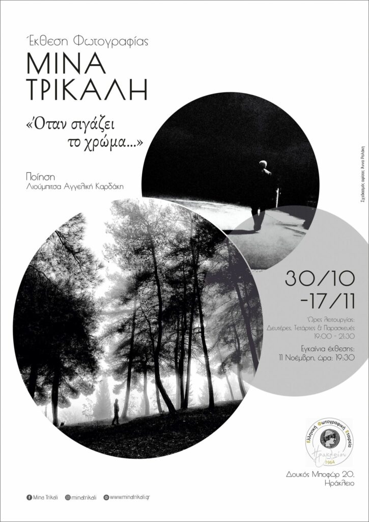 Ατομική έκθεση φωτογραφίας στο φιλόξενο χώρο της Ελληνική Φωτογραφική Εταιρεία Ηρακλείου- ΕΦΕΗ 30/10/2023 – 17/11/2023